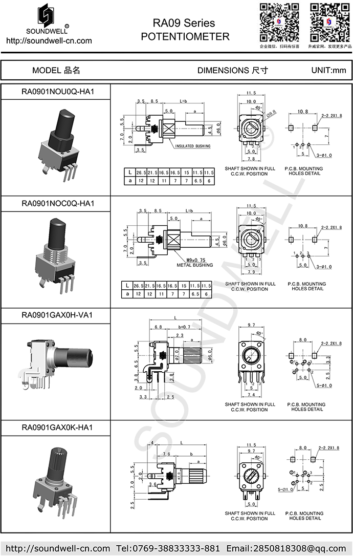 Potentiometer model: RA09 series
