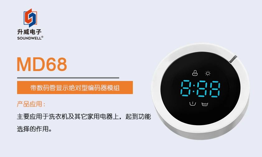 SOUNDWELL的MD68帶數(shù)碼管顯示絕對型編碼器模組,主要應(yīng)用于洗衣機、熱水器等白色家電產(chǎn)品上,起到功能選擇的作用。